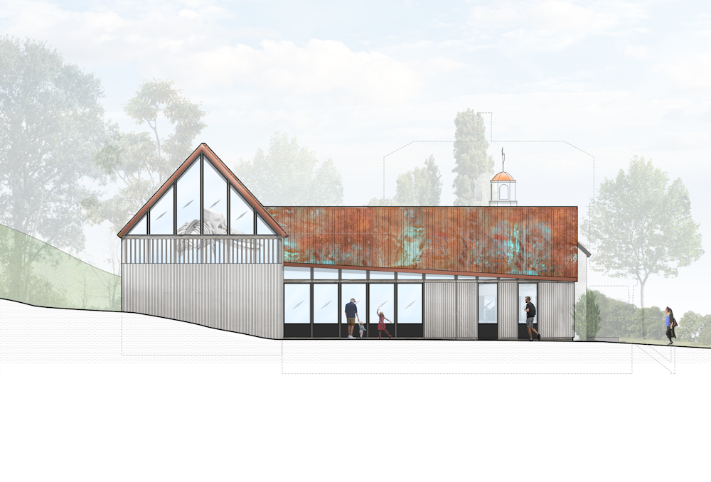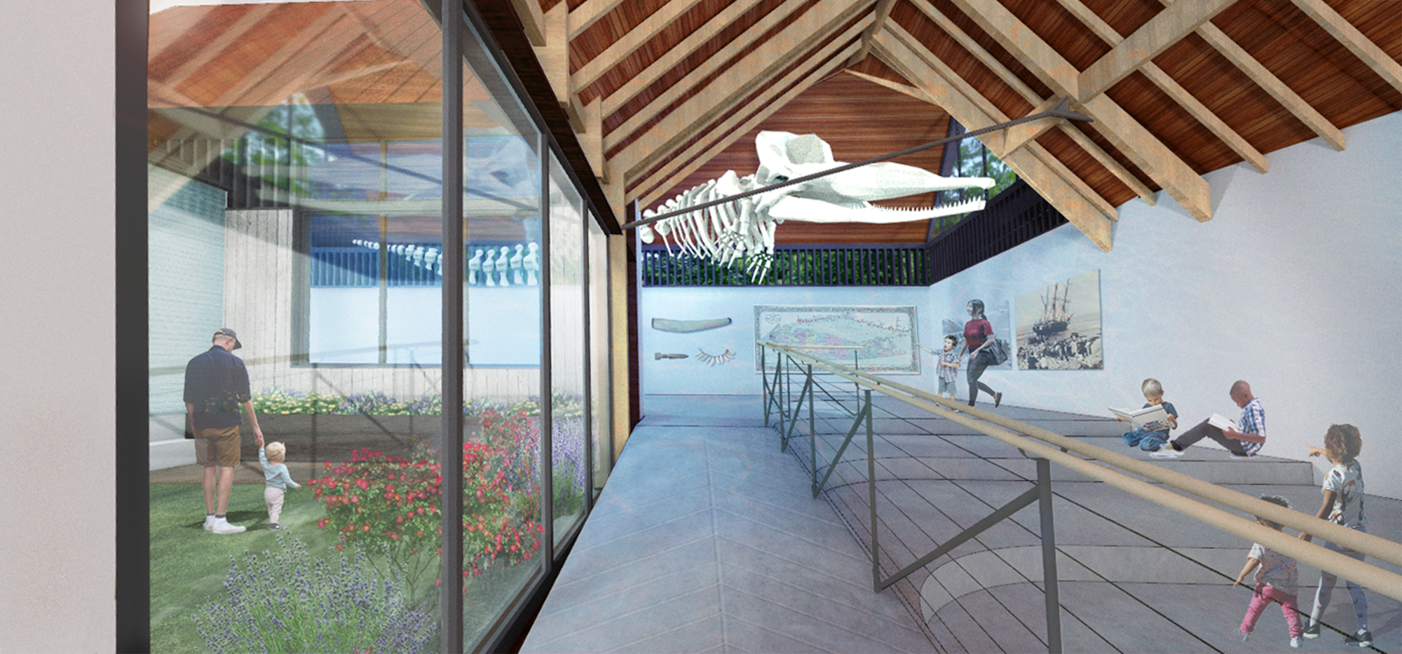 Our conceptual design for the Whaling Museum expansion starts with its whale skeleton. Its proportions inform the design of the Exhibition Hall. It also provides a dramatic focal point where two new galleries intersect.