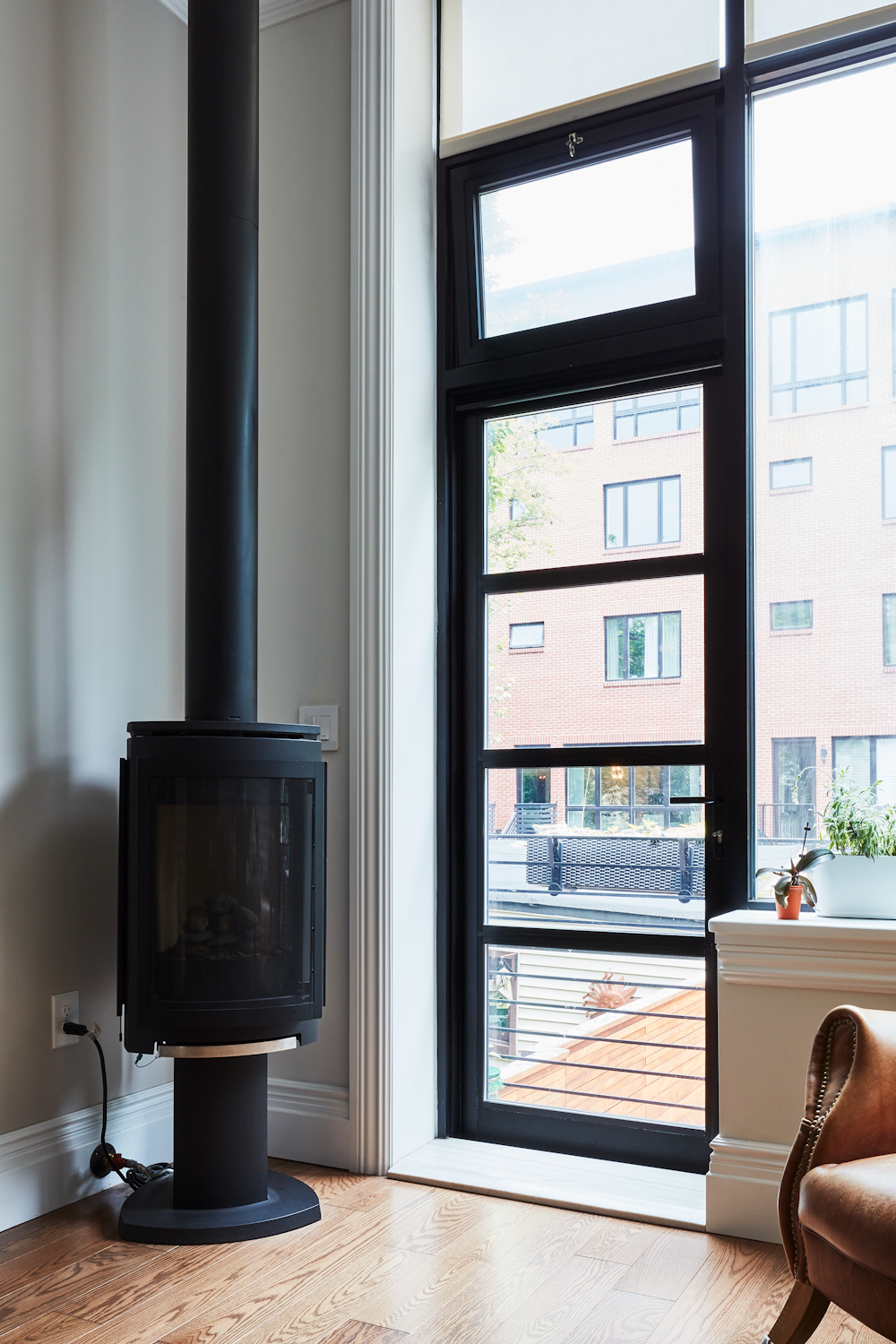 The 18-ft wide historic townhouse required modernizing, yet some of its original character preserving. Our design opens up the plan, with plenty of natural light to lift the ambience. A solatube light tunnel in the master suite brings brilliant daylight deep into the center of the house. At the rear, a sizeable steel and glass window wall opens up the parlor level to a new deck and the garden below. Neutral finishes and colors promote a sense of serenity and calm.