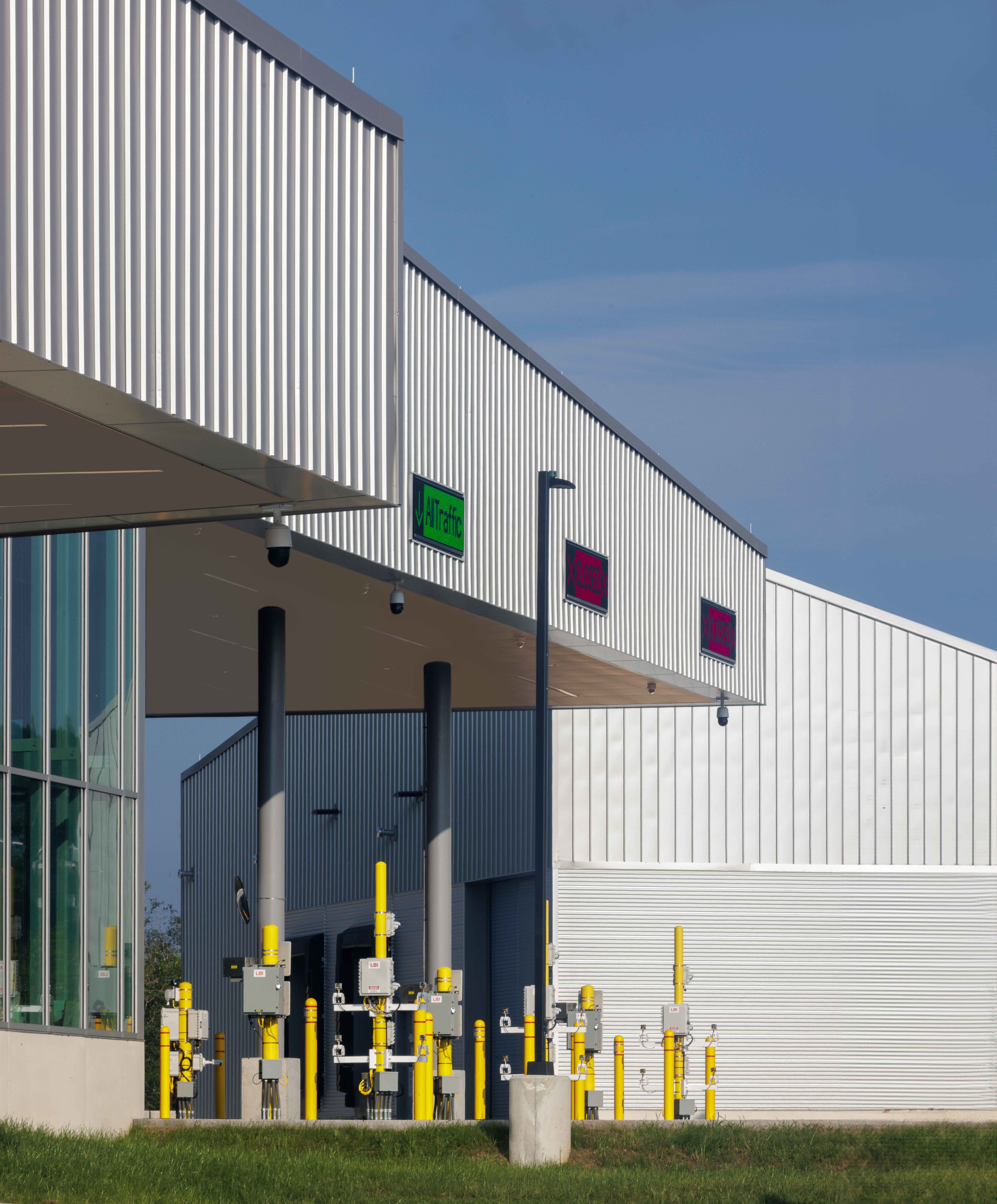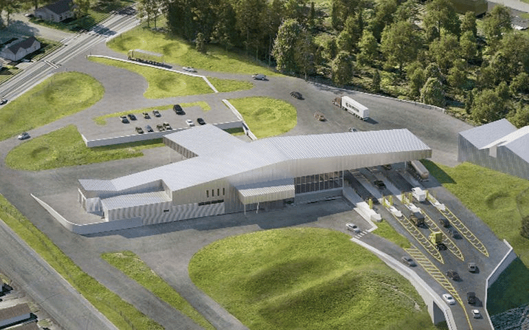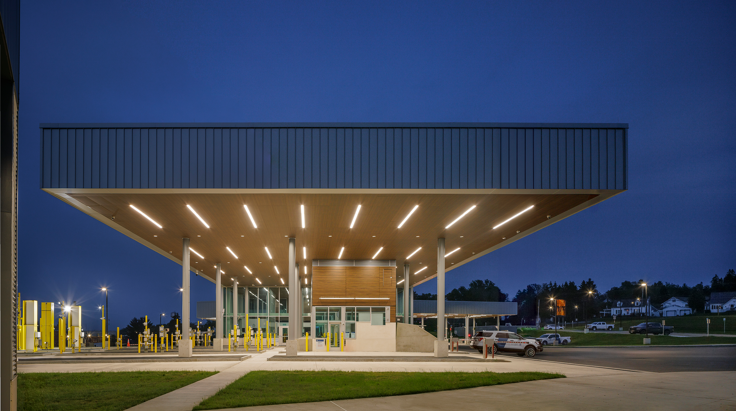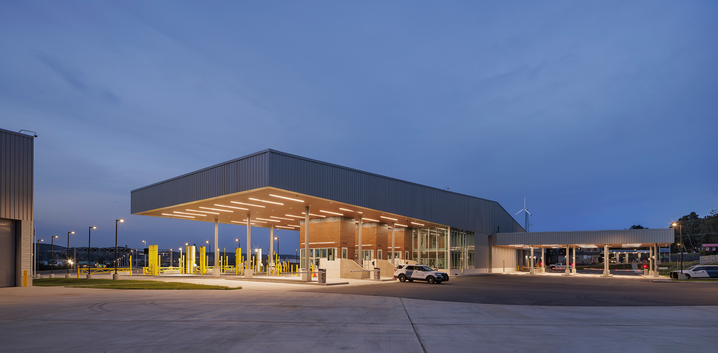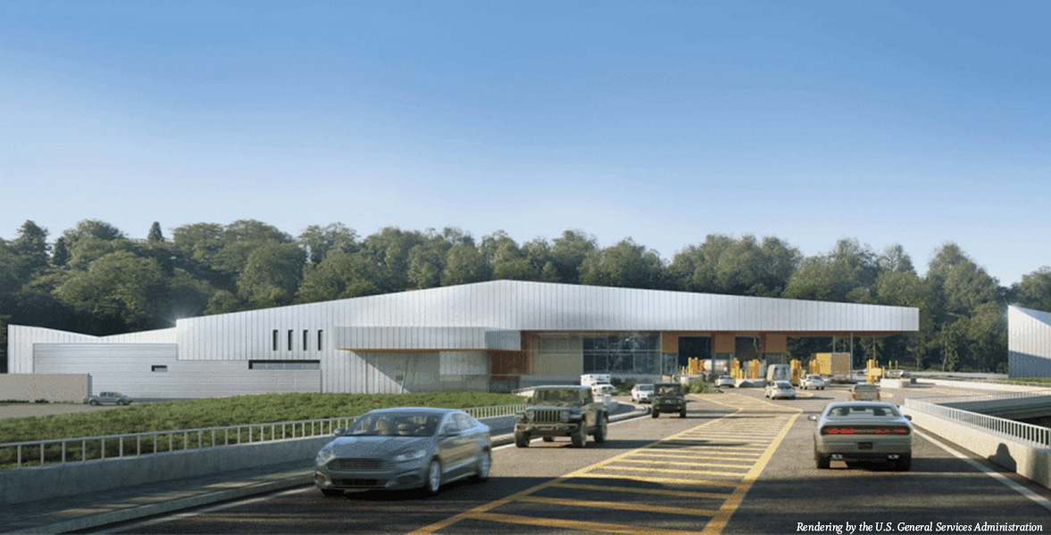 The facility covers 50,000 sq ft over 11 acres. It ties into a new bridge crossing and has extensive civil. The existing entry port was built in 1959. The new port will be state-of-the-art. Energy-efficient. Sustainable.