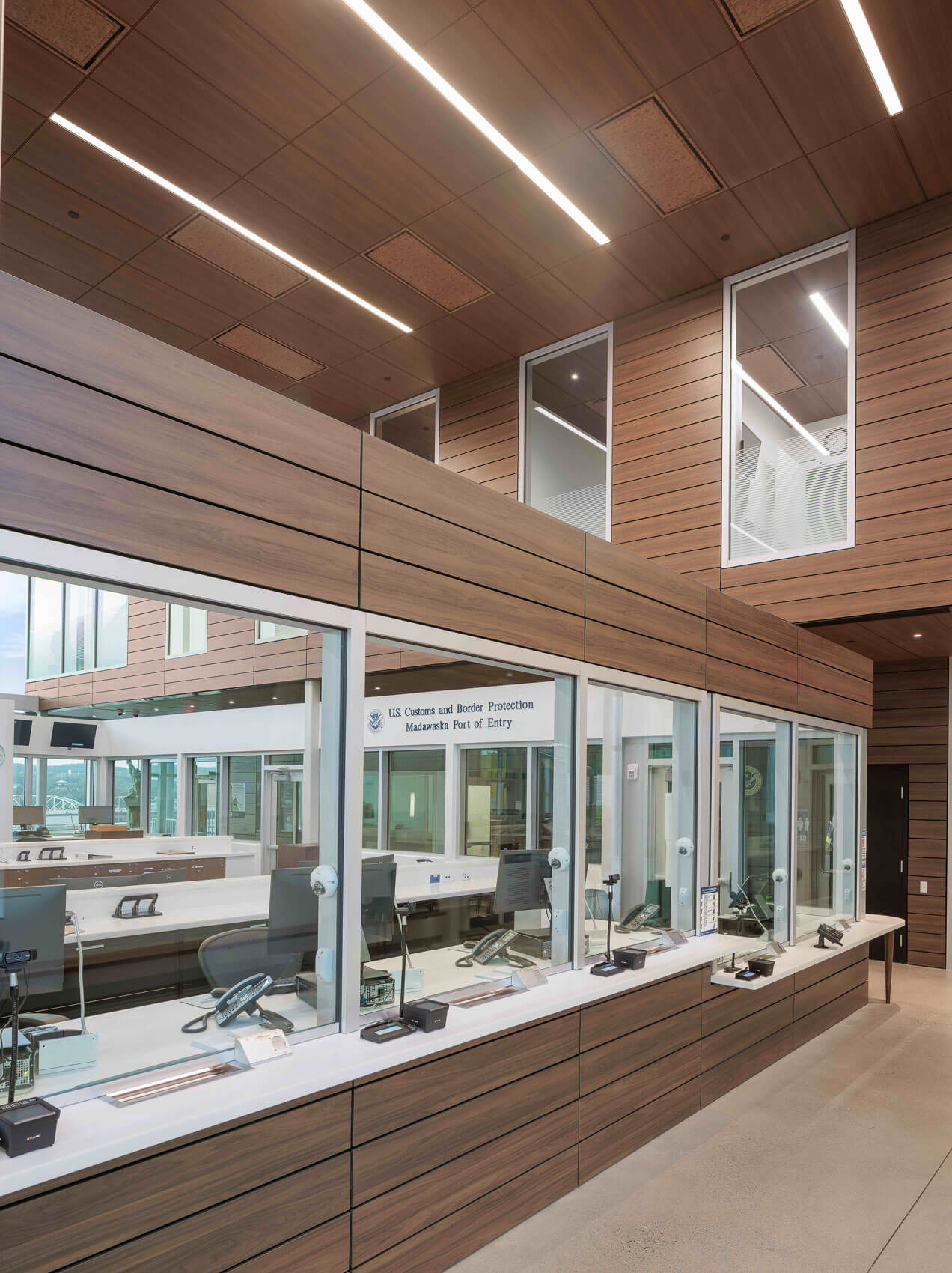 LEED (Leadership in Energy and Environmental Design) Gold-certified. Offering high-end technology for the Customs and Border Protection officers stationed there, this facility is built for the future.