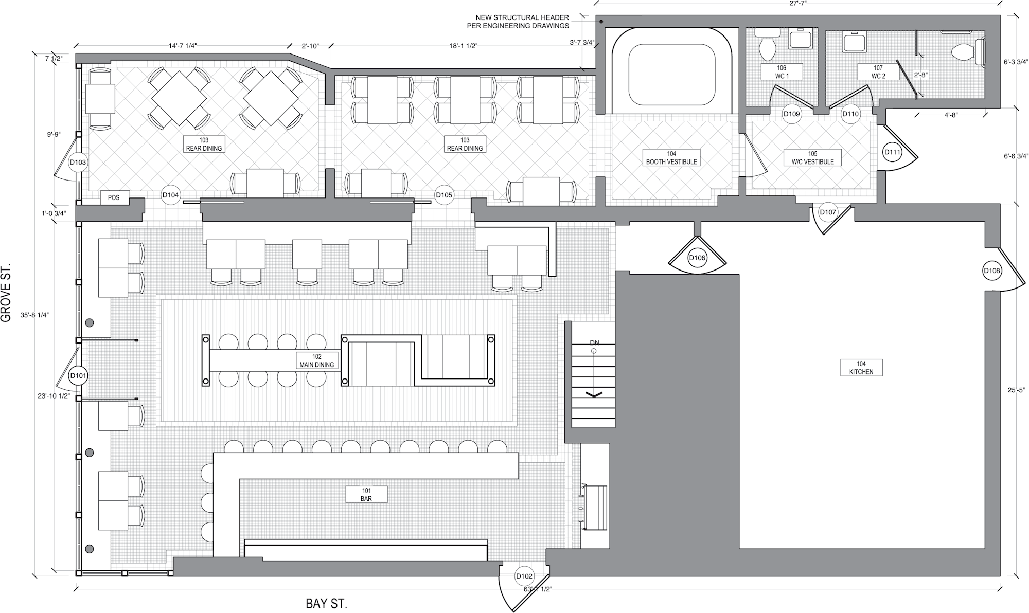 Because we are Architects, Engineers, and Builders, we can contribute to a project from various perspectives. Our role here as Executive Architect was simple when compared to the herculean effort invested by the restaurant’s Owner, Matteusz Kopec, whose ambition, vision, and personality come through in all details ranging from light fixture selections to setting the cutlery at the dining table.