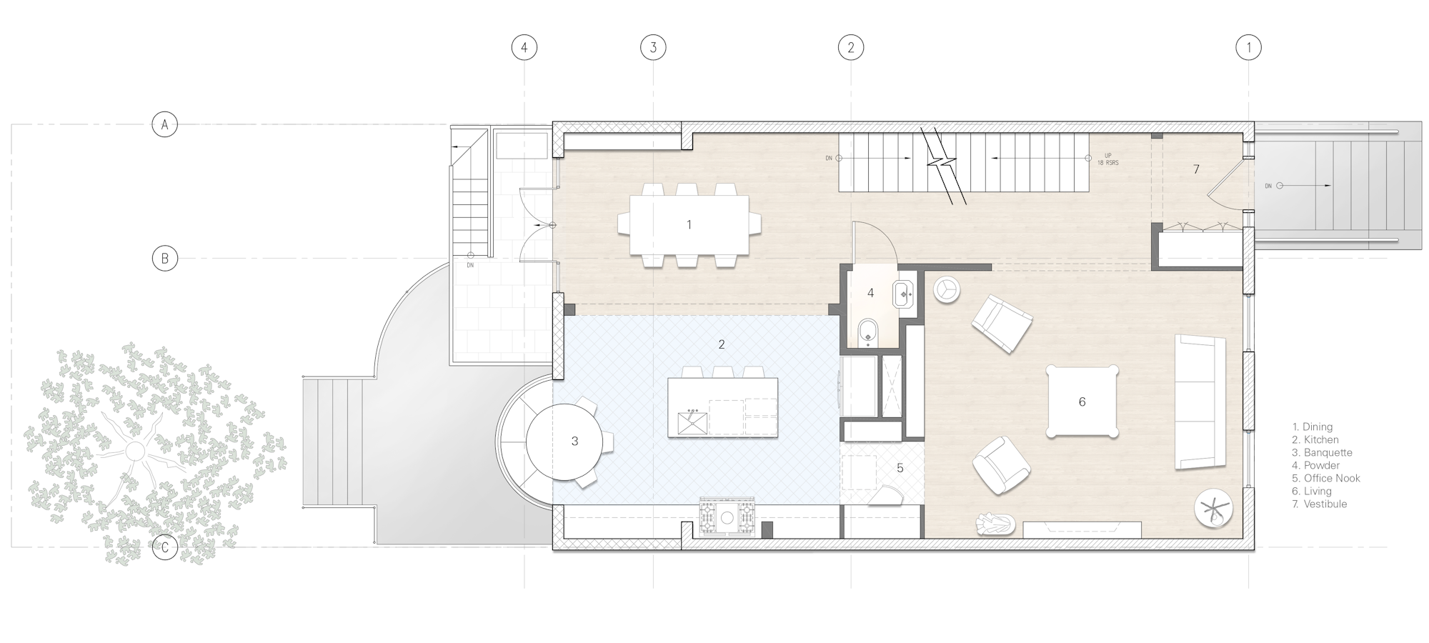 The house has to work for a growing family, so we conceived a 3-storey rear yard extension. After designing a steel moment frame, and stabilizing and repairing the existing brick shell and wood floors, we blew out the back wall of the structure. The expansive layout gave space for much more than the basics. A home theater, playroom, guest suite, spa, and second master suite were all added.