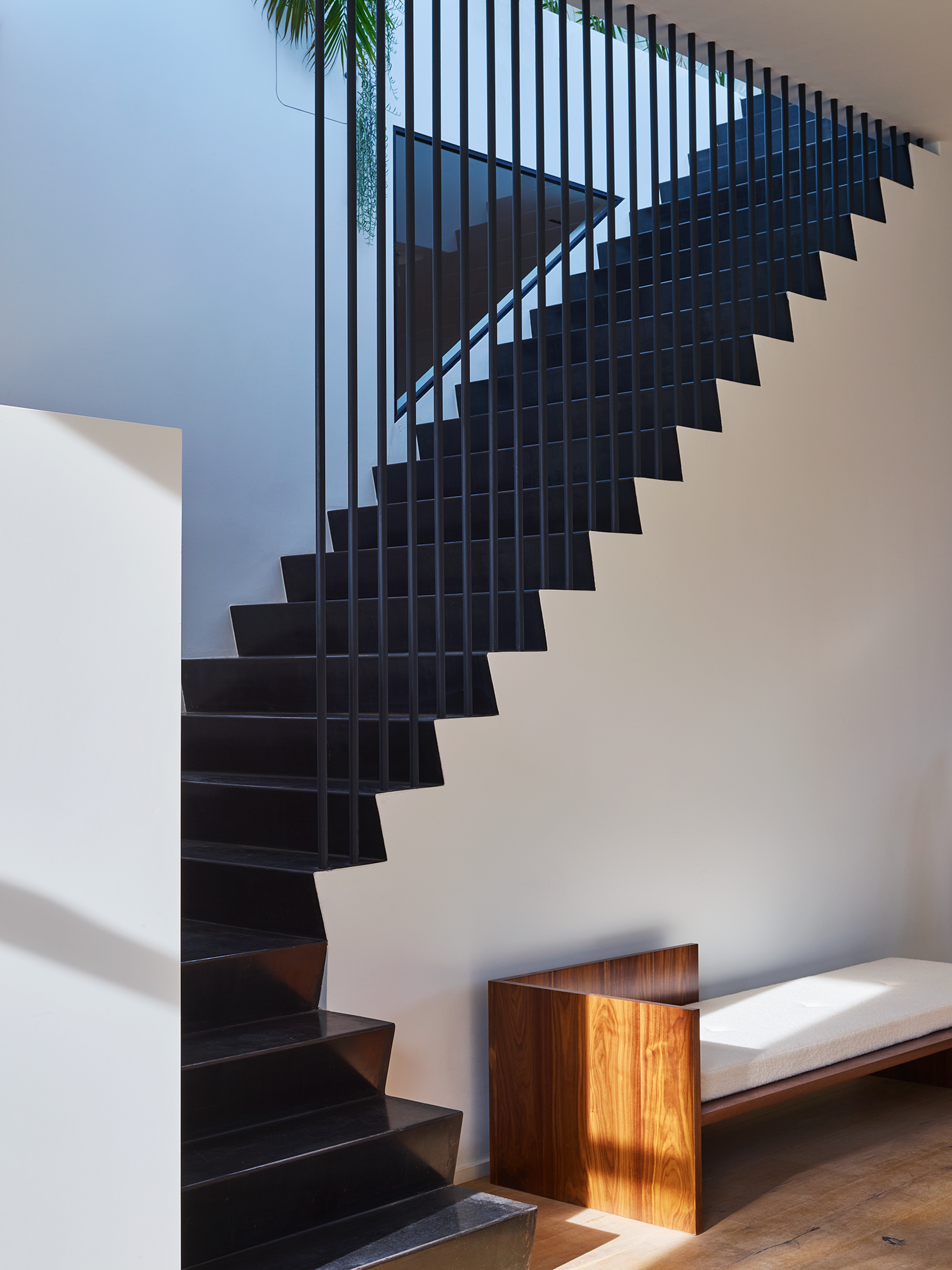 We extensively refurbished and re-modelled the cast-iron and heavy timber structure. Yet the wide spaces and lofty ceilings remain. Walls and timber columns were reinforced. Floors and walls removed. The entire roof structure was pulled off and replaced to increase the Penthouse height. Extending the side wing meant rebuilding with a replica façade. It was constructed in brick but held in a stainless steel frame. The gap left between the brick and structurally glazed window allows light to flood in.