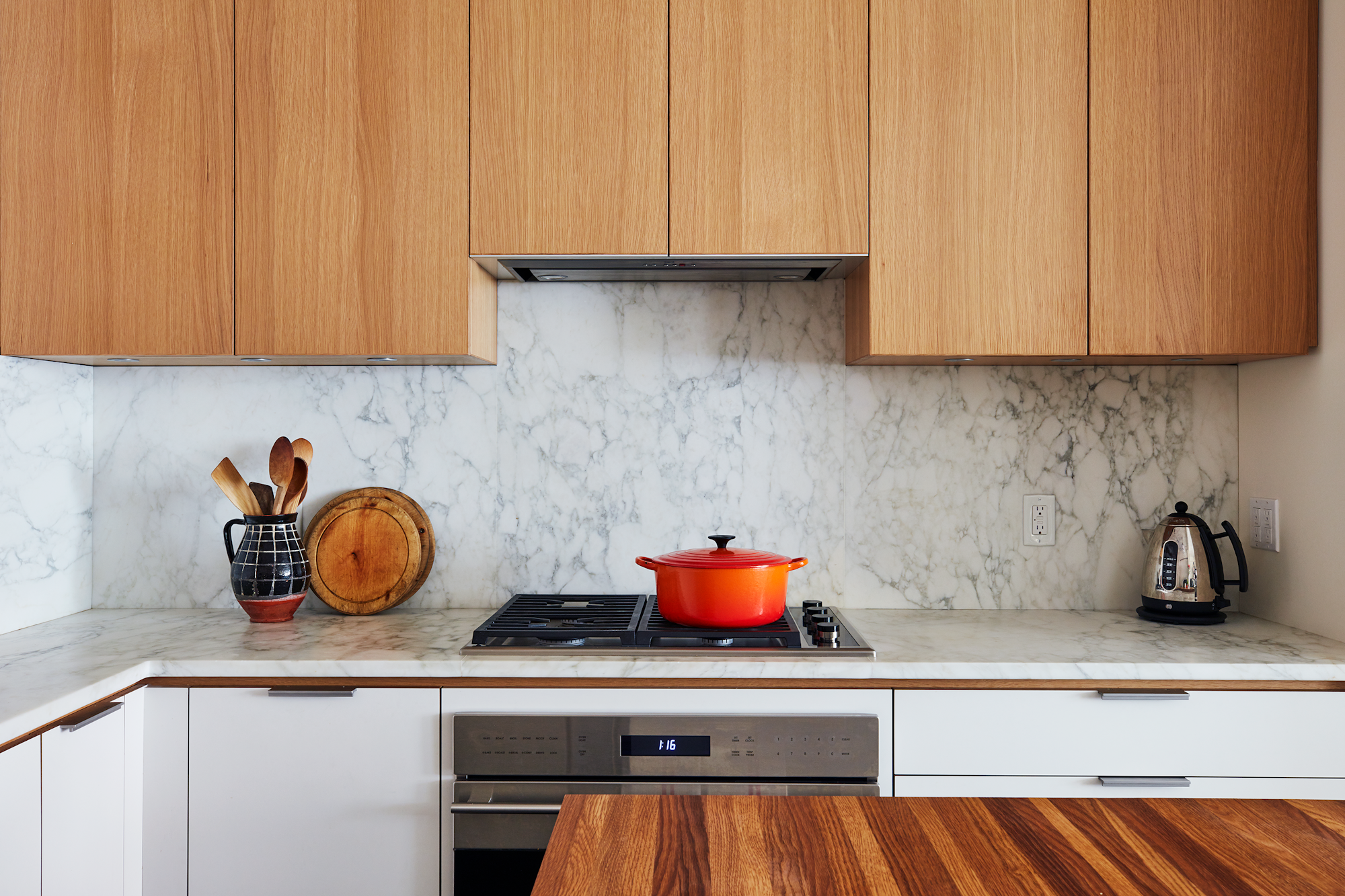 We knew that the challenge of working on interior co-op renovations in New York is always the unknown. Antiquated refrigeration-cum-drainage systems. Mysterious plumbing and electrical systems. Surprise chases crisscrossing the building. All were uncovered and dealt with. The space was opened up from choppy, smaller rooms into a cohesive and elegant space, including a sophisticated yet functional chef’s kitchen.