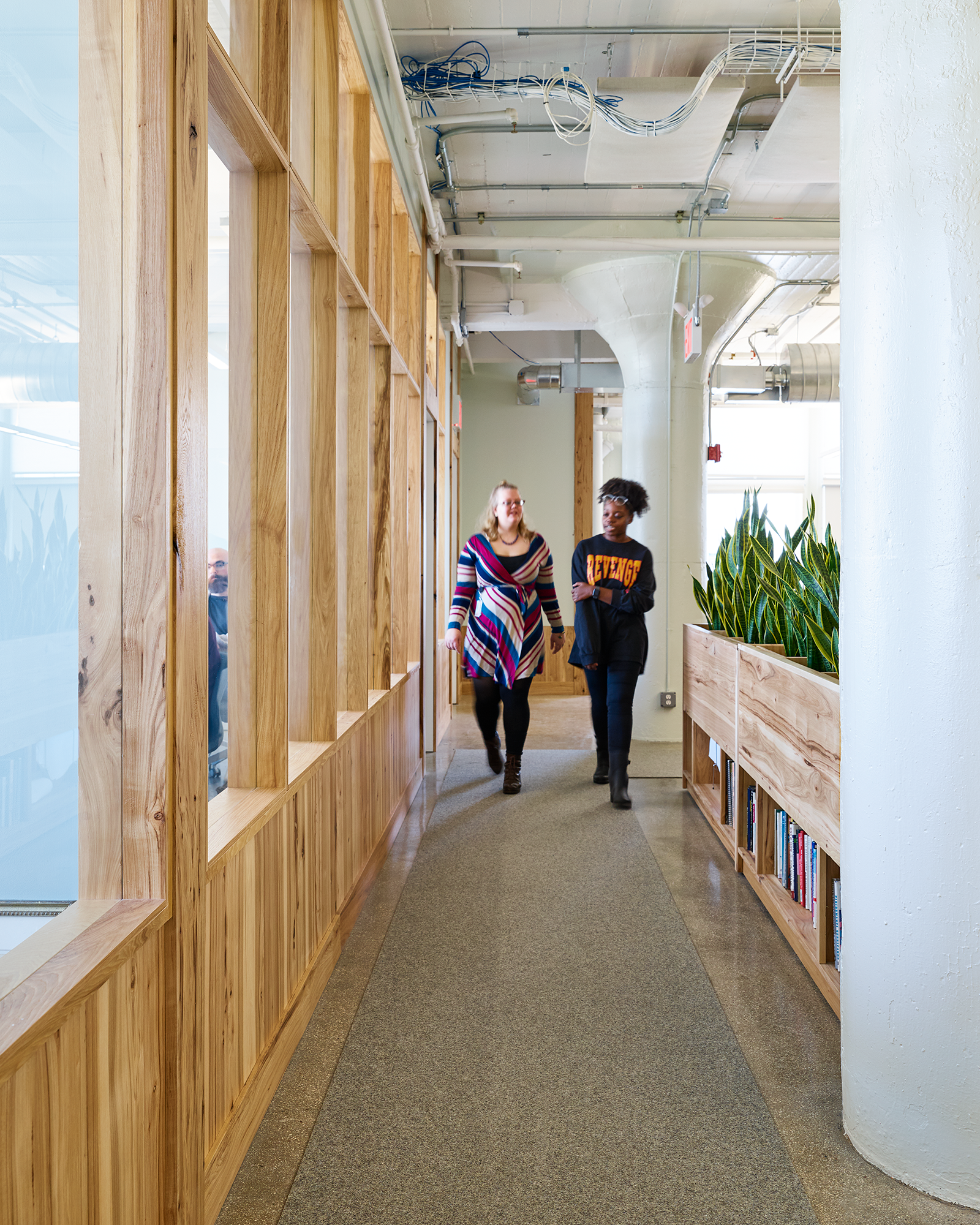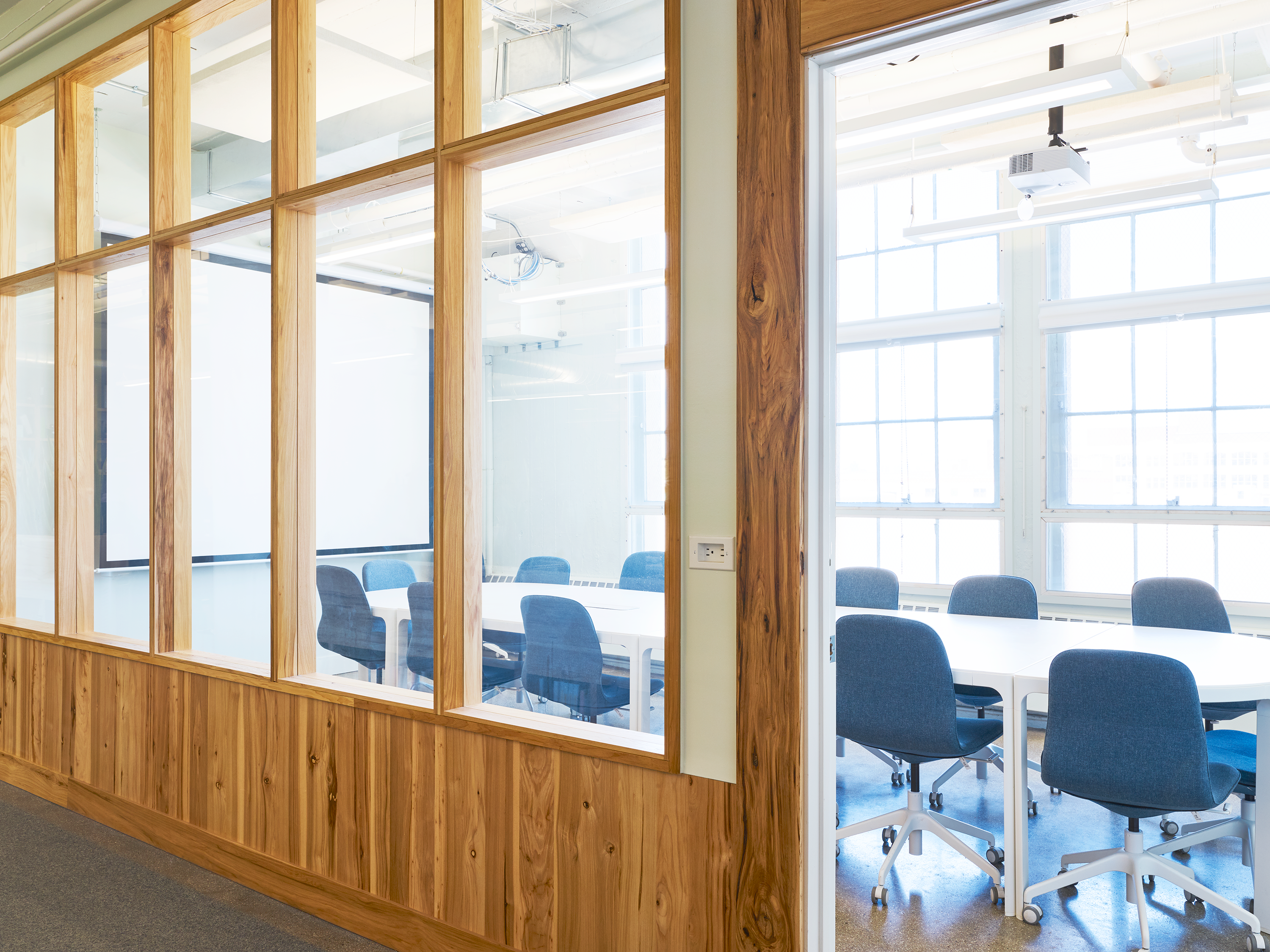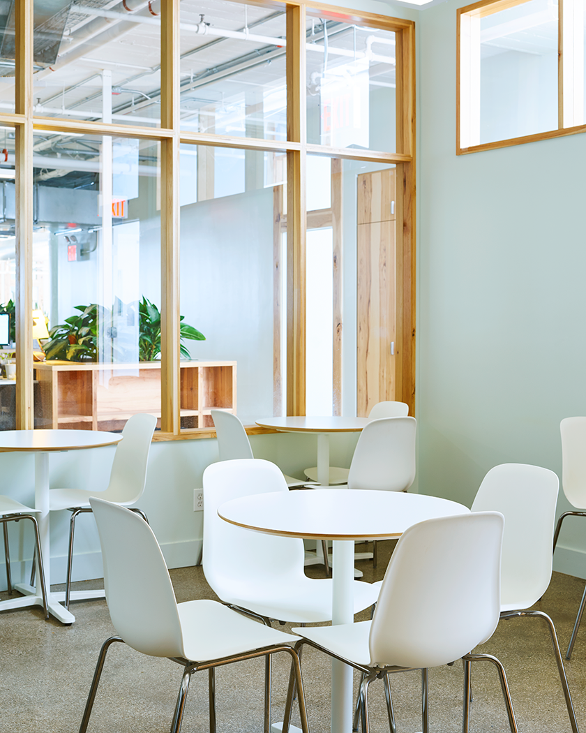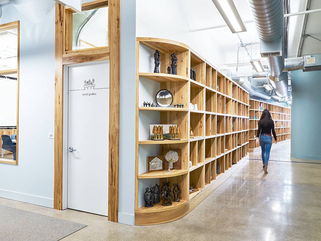 Throughout WWII, the BAT served as the largest military supply base in the US. Its imposing concrete structure has been kept largely intact, honoring its past. Yet it has a modern, Brooklyn touch. Our shared commitment to sustainable development led to considerate decisions around the use of natural materials. The acoustic panels, for example, are constructed from sustainable plant fibers and wood. Different, yet purposeful. Offbeat, yet functional. Historical, yet contemporary. The building now lives and breathes this tech company’s culture and values.