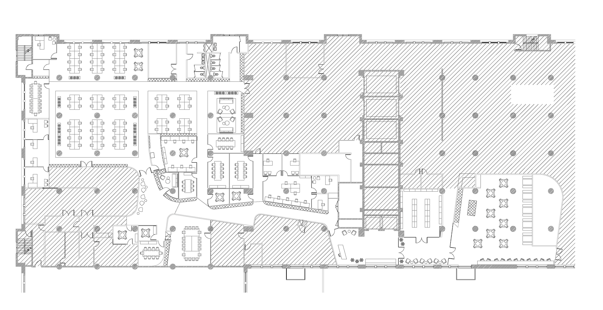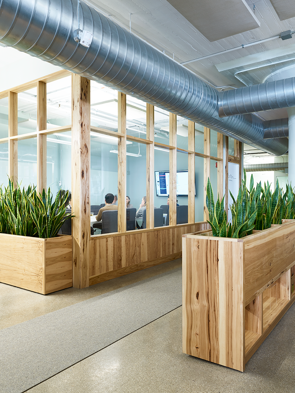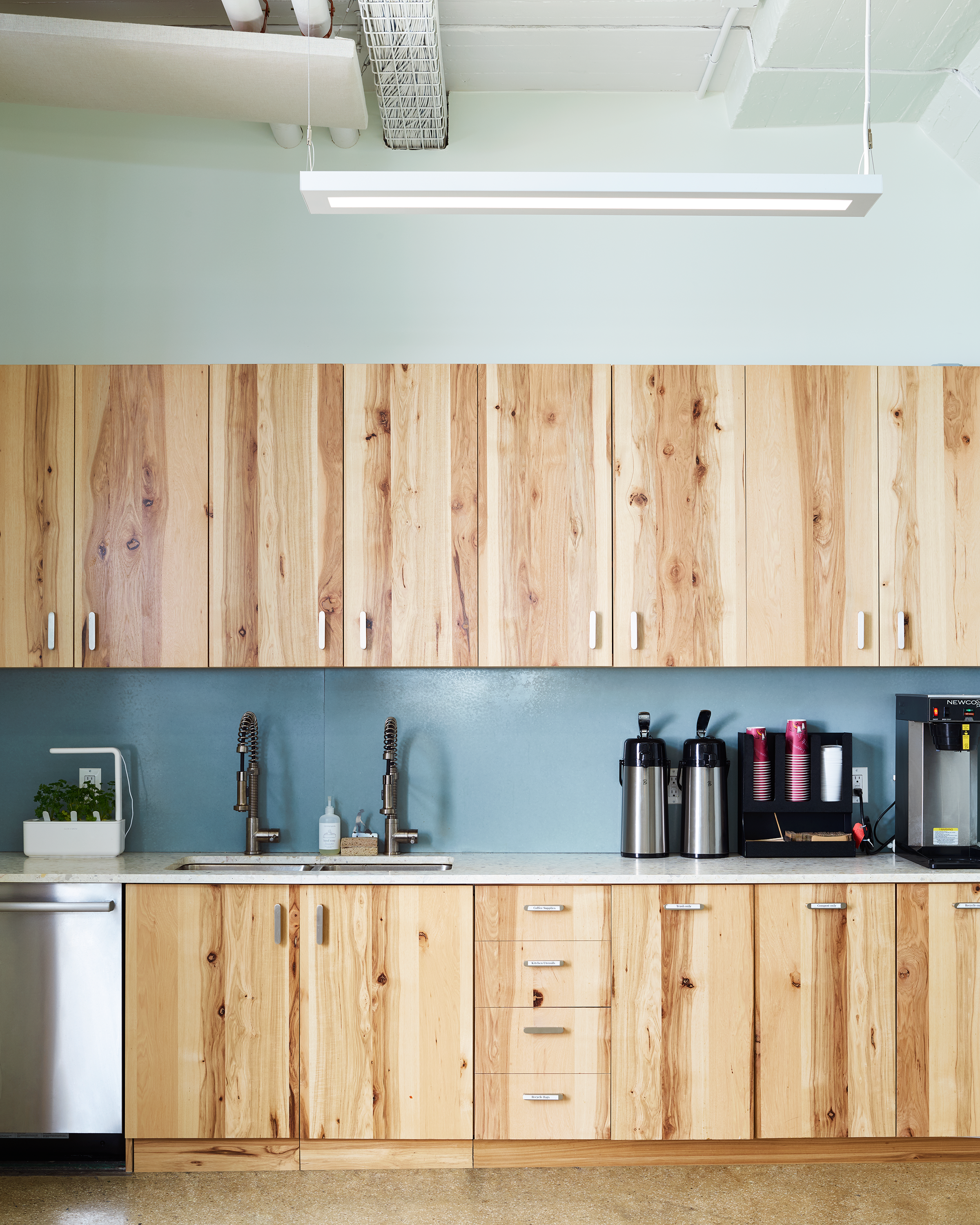 Throughout WWII, the BAT served as the largest military supply base in the US. Its imposing concrete structure has been kept largely intact, honoring its past. Yet it has a modern, Brooklyn touch. Our shared commitment to sustainable development led to considerate decisions around the use of natural materials. The acoustic panels, for example, are constructed from sustainable plant fibers and wood. Different, yet purposeful. Offbeat, yet functional. Historical, yet contemporary. The building now lives and breathes this tech company’s culture and values.