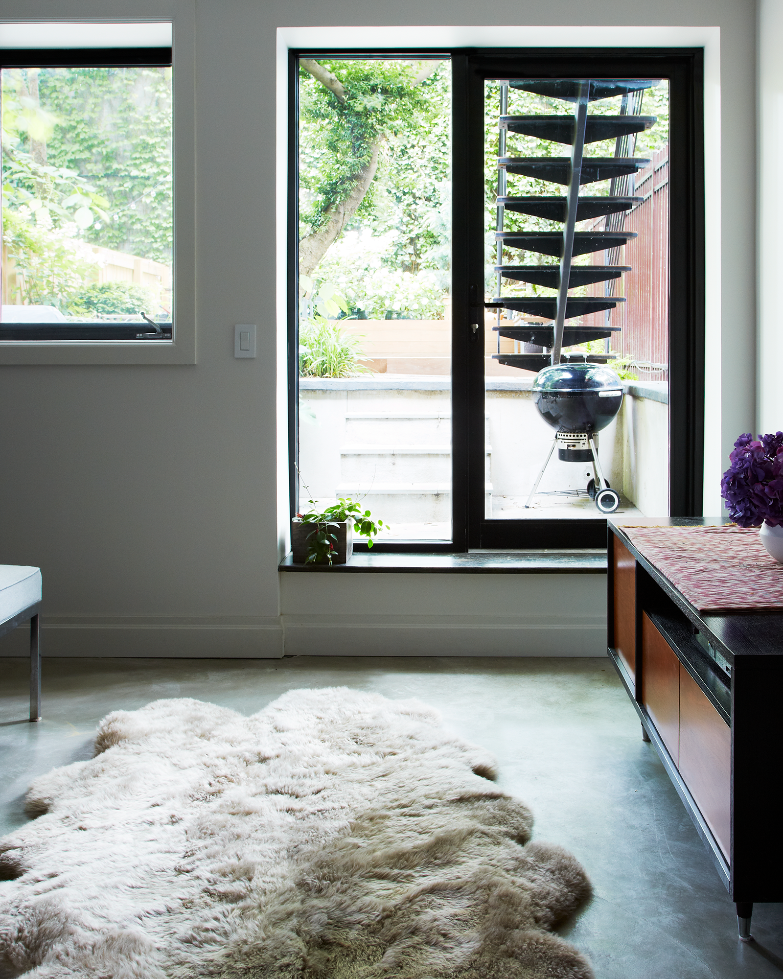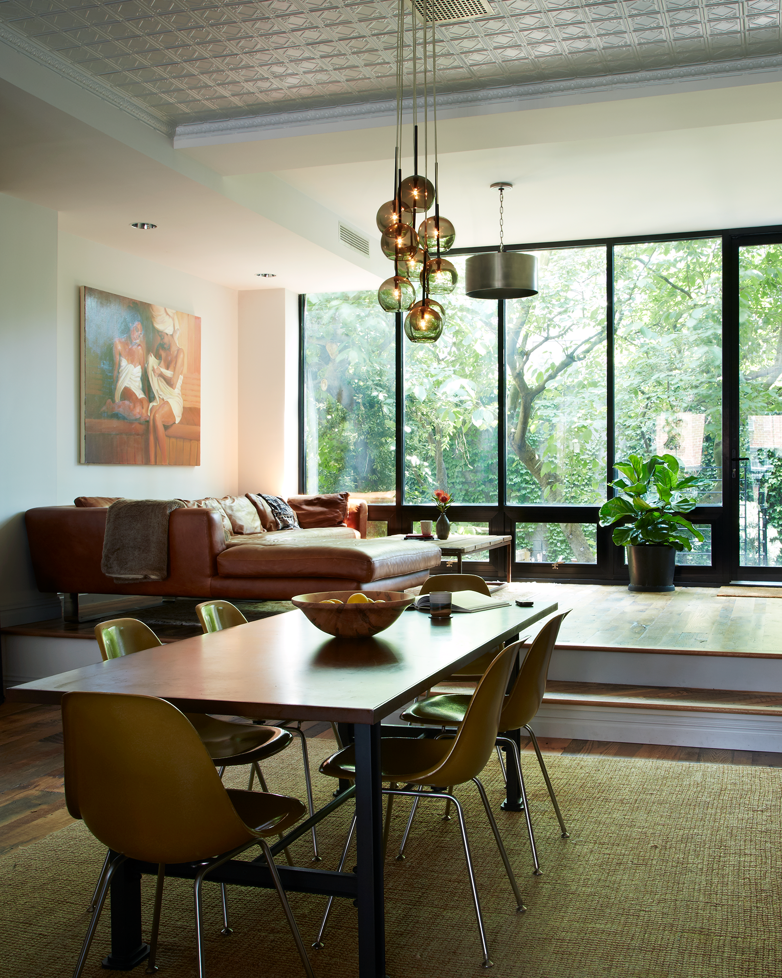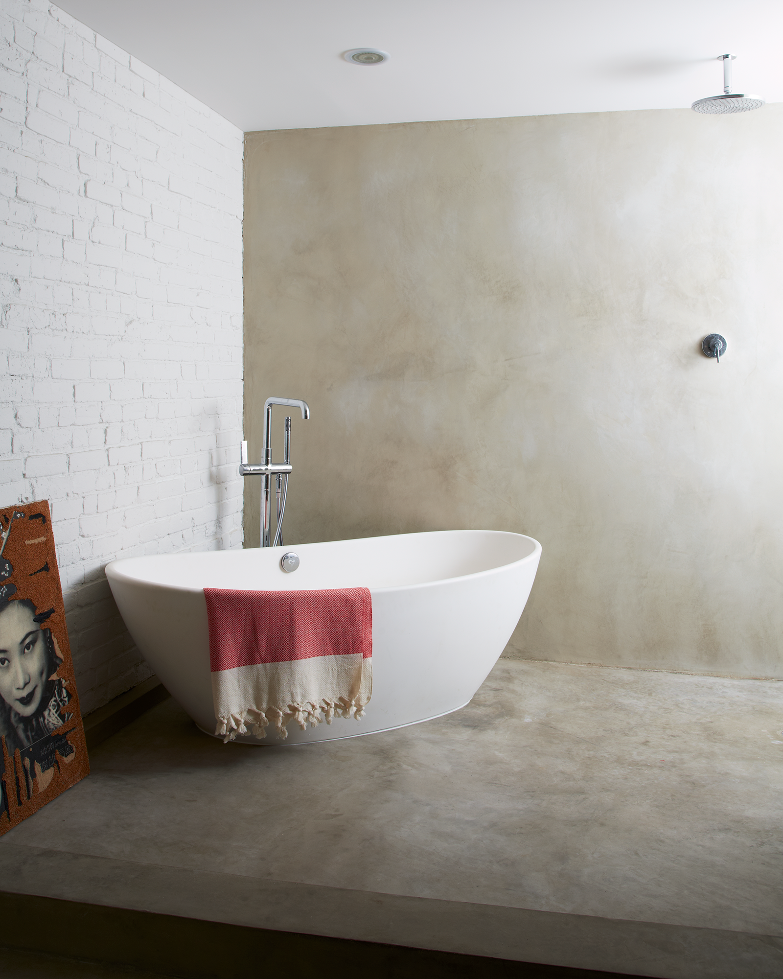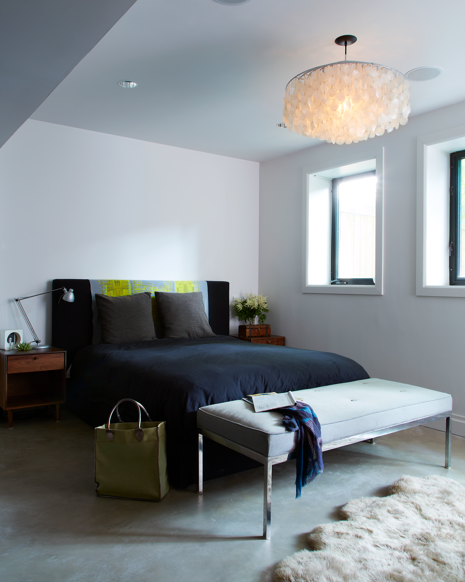 The owner’s duplex occupies the upper two floors of the house. We worked in close collaboration with the clients, an interior designer, and a furniture collector. Mid-century modern fixtures were mixed with contemporary fittings. Extensive millwork was custom fabricated. The main bedroom’s concrete floor extends into a minimalist wet room. An MTI standalone tub creates an eye-catching centerpiece.