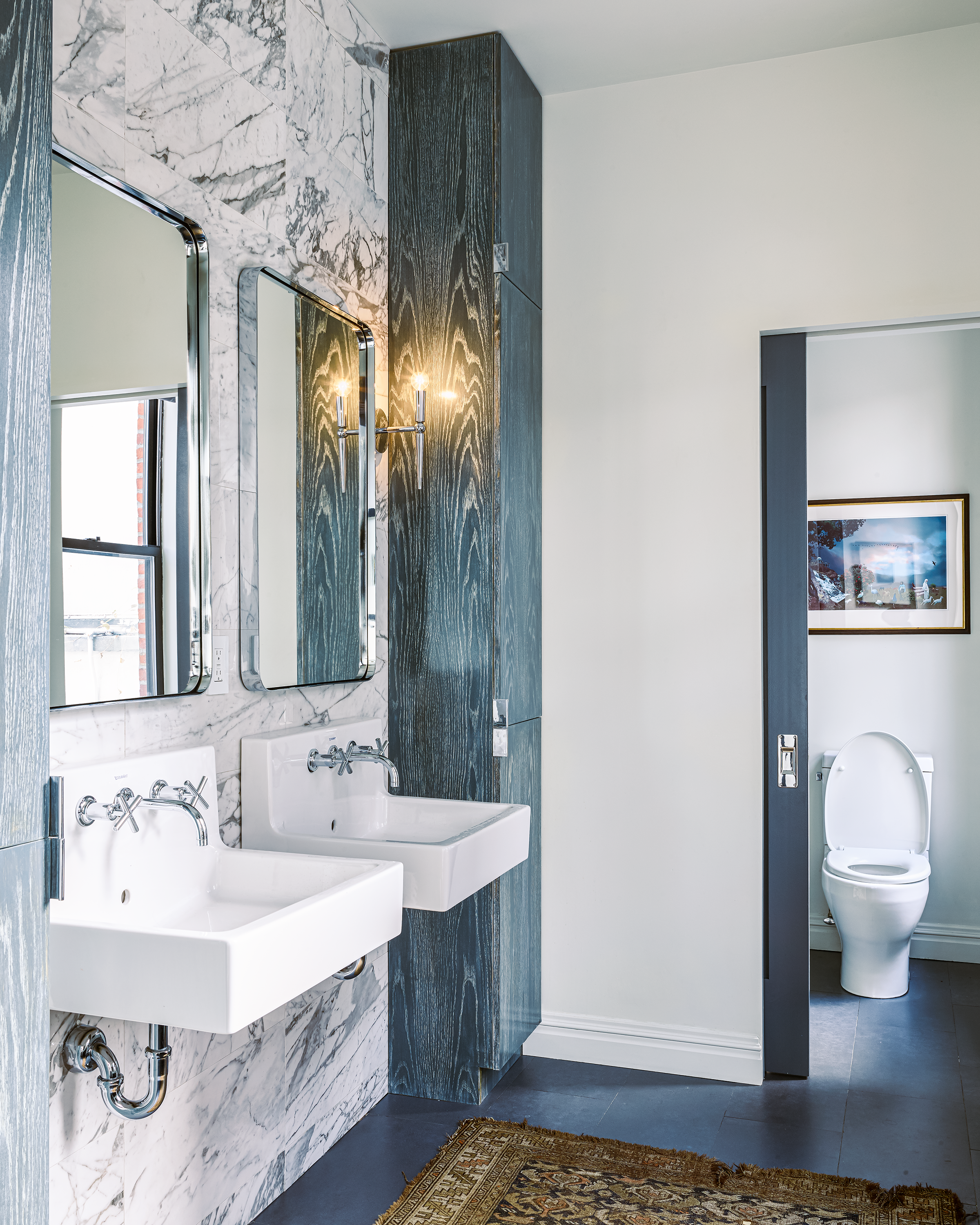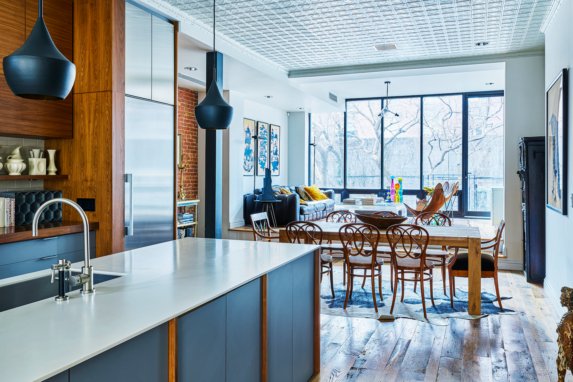 Agencie designed a space that enables them to manage both sides of their lives. Half works hard as functional yet inspiring home office space. The other half is a tactile, Bohemian-style home that perfectly reflects their personalities. The living space also offers the true heart of the home, a spacious chef’s kitchen. Throughout the property, spaces have been incorporated to celebrate and display the couple’s enviable art and textiles collection.